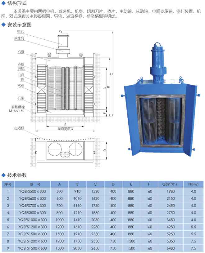 SFS型双毂式粉碎型格栅除污机